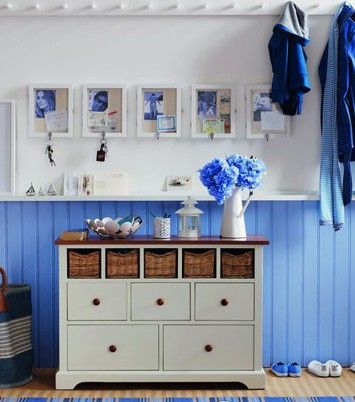 玄關處是一個非常好的儲物空間,家具的色彩同墻漆的色彩搭配出色彩沖擊力,柔和美觀。家具的選擇也很重要,抽屜,藤編可以很好的儲物分類。