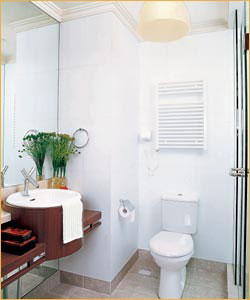 在鏡面上安裝壁燈照明效果比較好。在洗臉盆的附近上方,還可以安上可插式電插座,供吹風機、刮須器器具使用,要注意的是插座上應有防水蓋板。