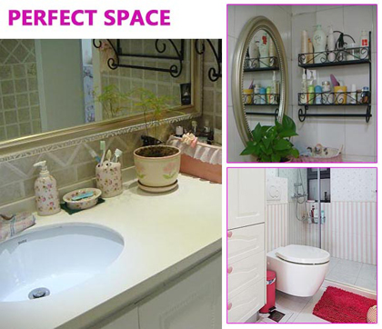 衛(wèi)浴間的裝飾非常簡潔,鐵藝的架子,白色的櫥柜,皆以實用為主,很有美式田園的味道。
