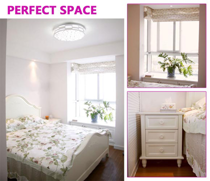 臥室空間明亮,窗外的陽光很容易就讓屋子里充滿陽光。碎花布藝給人大方清新的感覺,配上綠色的盆栽,很有自然鄉(xiāng)村的美感。