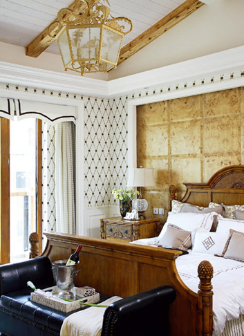 臥室的背景墻延用大氣的金銀灰色,依然是實(shí)木的家具,標(biāo)準(zhǔn)的美式風(fēng)格