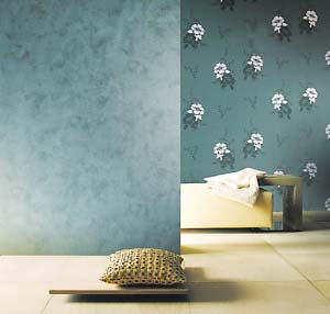 在壁紙展示廳中,鮮艷炫目的圖案與花朵最搶眼,有些花朵圖案逼真、色彩濃烈,遠觀真有呼之欲出的感覺。這種壁紙可以降低房間的拘束感,適合格局較為平淡的房間。