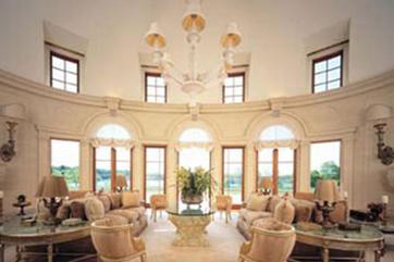圖中為橢圓形的起居室,值得一提的是,這一西式建筑的設(shè)計(jì),整個(gè)臺(tái)基為方形,而起居室的天穹為橢圓形呈“天蓋”狀,在設(shè)計(jì)上體現(xiàn)了“天圓地方”的空間理念,在這一點(diǎn)上,東西方建筑智慧和理念找到了相似的契合點(diǎn)。圖中的起居室作為現(xiàn)代建筑的一個(gè)范式,在營(yíng)造“天蓋”狀的穹頂時(shí)已經(jīng)完全掌握和熟練應(yīng)用了架構(gòu)技術(shù),而這種技術(shù)在中國(guó)古代是不易達(dá)到和實(shí)現(xiàn)的。我國(guó)著名易學(xué)專家張濤先生在《秦漢易學(xué)思想研究》中寫(xiě)道:“平帝之時(shí),王莽專權(quán),劉歆奉命主持設(shè)計(jì)建造明堂。按照禮制規(guī)定,明堂上圓下方,圓法天,方象地??僧?dāng)時(shí)的建筑技術(shù)還沒(méi)有達(dá)到在方土臺(tái)子上建造大型圓形瓦屋頂房子的水平。于是劉歆吸收、借鑒《周易》卦象內(nèi)卦為下卦,外卦為上卦,外內(nèi)猶上下的觀念,巧妙地解決了這一問(wèn)題。”說(shuō)明在易學(xué)不斷豐富完型的兩漢時(shí)期,中國(guó)傳統(tǒng)建筑技術(shù)特別是在空間的營(yíng)造和劃分方面還不能滿足要求,但通過(guò)發(fā)揮易學(xué)智慧中變通思想,便可以巧妙地解決有關(guān)建筑方面的難題。而到了科技水平日新月異的今天,以前在技術(shù)層面上很難有所突破的問(wèn)題都能得到相應(yīng)的解決,那么,合理和充分應(yīng)運(yùn)易學(xué)智慧進(jìn)行現(xiàn)代建筑與家居空間的設(shè)計(jì)和劃分應(yīng)該接近了“一切皆有可能”的程度,圖中西式穹頂技術(shù)無(wú)疑對(duì)于家居易學(xué)空間的實(shí)現(xiàn)和擴(kuò)展提供了相當(dāng)?shù)目尚行?,從另一個(gè)角度來(lái)看,也促進(jìn)了傳統(tǒng)易學(xué)智慧在現(xiàn)代社會(huì)特別是建筑家居方面的不斷豐富和創(chuàng)新發(fā)展。