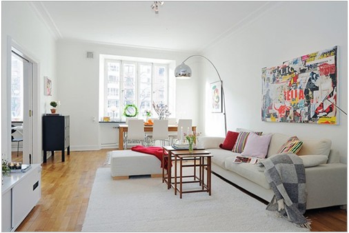 概要: 白色做家居裝修的主色調(diào),簡單的顏色,卻能營造出豪華舒適的效果。再偶爾加上適當(dāng)花哨的部分和簡單的線條,豪華舒適之余又有一種簡約的味道,同時也吹著一股典雅浪漫的歐洲風(fēng)。墻壁上濃郁的壁畫,以及門框上層的書架,一同增加了房間顏色的層次感。豎紋抱枕的顏色和壁畫用的顏色比較近似,讓壁畫和客廳更恰當(dāng)?shù)厝诤显谝黄?。豎紋的抱枕和弧形的落地?zé)?,直線曲線相互映襯,增加房間的立體感。