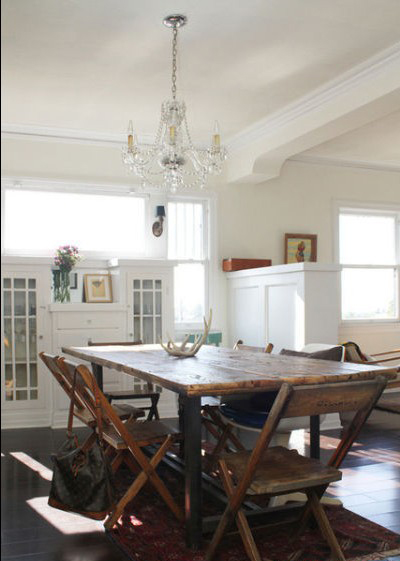 有人說(shuō)家就是要越住越有感覺(jué),很多家裝的圖片,都是業(yè)主住進(jìn)一年或兩年后才拍,這樣設(shè)計(jì)才能達(dá)到一定水準(zhǔn)。我只看到在這里這句話(huà)對(duì)了一半,這張舊舊的餐桌給這個(gè)新家增添了不少溫馨的舒適感。