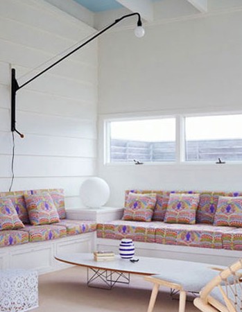 客廳里明亮的白色調(diào)沉靜溫和,糖果色印花沙發(fā)、木質(zhì)茶幾,田園風(fēng)格特有的明凈清爽的感受撲面而來。艷麗的坐墊在客廳樸實(shí)的整體設(shè)計(jì)中作為點(diǎn)睛一筆,讓人倍感溫暖而不覺得突兀。