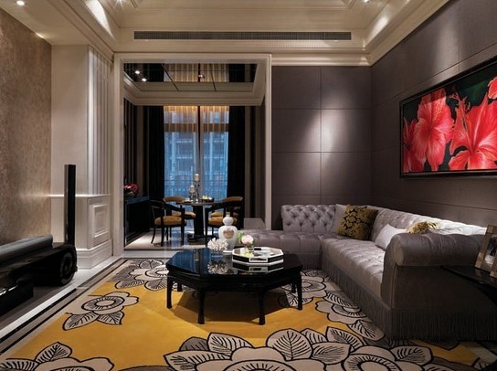 明快的地毯,鮮紅的裝飾畫大膽的入睡鮮明的顏色給整個(gè)空間帶來了一絲的活力與生命。
