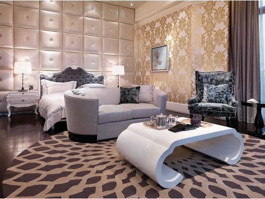 古典的水晶燈為整個(gè)空間增添了奢華之氣,白中點(diǎn)黑、黑中點(diǎn)白,和諧又不是貴氣。整體的色調(diào)相呼應(yīng),茶幾的金起了點(diǎn)睛作用。