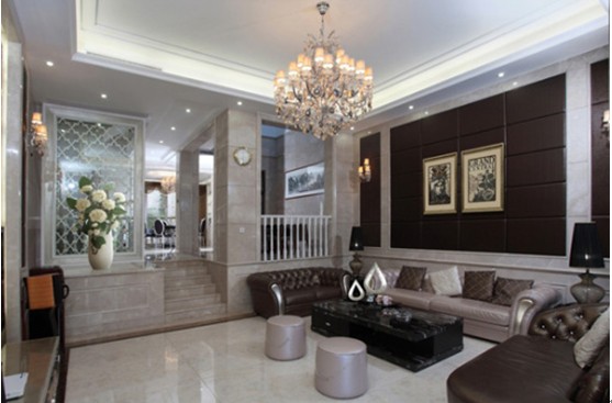 概要: 設(shè)計手法上主要采用新古典主義+歐式元素+現(xiàn)代元素,豪華中卻不見堆砌,整體上顯得奢華與貴氣,同時又體現(xiàn)時尚與優(yōu)雅,與業(yè)主的生活品味與審美訴求吻合?! 】蛷d:客廳空間,以米黃色與白色系為主色調(diào),這樣空間顯得干凈明亮,地面墻面使用具質(zhì)感的大理石,氣派、尊貴。客廳背景墻則間以現(xiàn)代時尚的黑色軟包,配以相近色系的精美沙發(fā)與家具,顯得十分時尚、沉穩(wěn)。