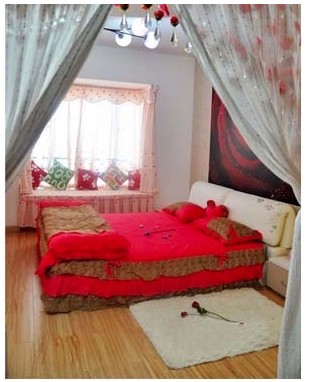 臥室裝修的簡(jiǎn)潔清新,紅色的床品讓人有種溫暖放松的感覺(jué)。造型甜美的飄窗在粉色的窗紗點(diǎn)綴下,格外的清新舒適,陽(yáng)光很好的情況下可以在此小息或看書,獨(dú)有的一份享受時(shí)刻。