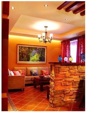 橙色讓人感覺(jué)特別親切,是活力的象征,是高興和歡喜的顏色。在這樣一個(gè)美式鄉(xiāng)村風(fēng)格的家中,放佛置身于暖爐旁,溫暖而舒服。