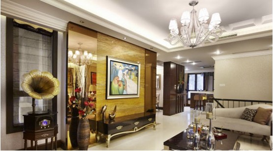 開(kāi)闊的空間中,設(shè)計(jì)師采用了古典與老上海結(jié)合的手法,居室以奢華的淺金色調(diào)配以沉穩(wěn)大氣的木飾面、各類復(fù)古花型紋樣充斥于壁紙、軟裝擺件、裝飾布藝中,體現(xiàn)該居所奢華但不繁復(fù)、內(nèi)斂又不張揚(yáng)。各式老上海小品,古樸的鳥籠、略顯沙啞的留聲機(jī)、百樂(lè)門式的吧臺(tái),茶余飯后、身處其中,音樂(lè)悠揚(yáng)的響起,仿佛又馳騁于十里洋場(chǎng)的老上海之中,與屋主高雅的品味、對(duì)于生活享受的態(tài)度完全相符。