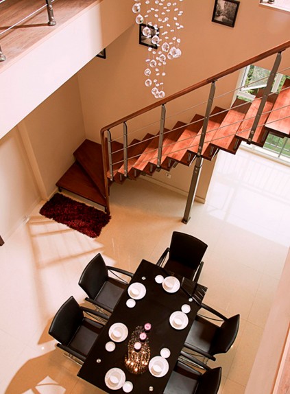 餐廳的燈用數(shù)量來(lái)打造餐飲空間的細(xì)膩?zhàn)兓?;黑色的餐桌、白色的餐具、下垂的乳白色的工藝燈,?jiǎn)單而具大手筆;