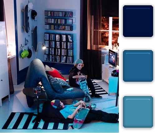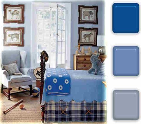 搭配點(diǎn)評(píng):同深淺的藍(lán)色運(yùn)用營(yíng)造了安靜的空間氛圍,可以使好動(dòng)的男孩子靜下心來(lái)。