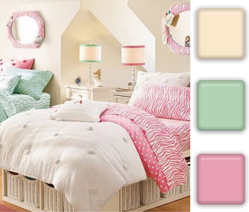 搭配點(diǎn)評(píng):浪漫的淡綠色臥室,采用了同樣顏色的墻壁與床品,打造了可愛(ài)、浪漫的風(fēng)格小空間。