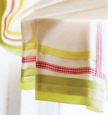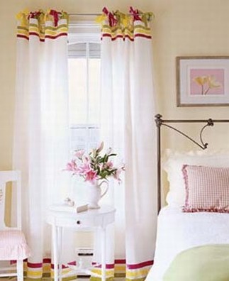 概要: 很多人為選窗簾發(fā)愁,只有好看的布料,卻不知道如何獨出心裁。不用跑到裁縫店,也能親手制作出漂亮而具個性的窗簾裝飾。 1。垂地吊帶窗簾 3種不同的水果色調天鵝絨絲帶使平白的布環(huán)窗簾變?yōu)檠胖碌难b飾。 方法如下:放平窗簾,條紋絲帶水平方向用織物膠水粘好。制作窗簾的頂部扣環(huán),先把吊帶剪下來,然后在每個窗簾上剪出6個間距相等,2。