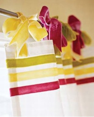 3種不同的水果色調天鵝絨絲帶使平白的布環(huán)窗簾變?yōu)檠胖碌难b飾。