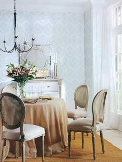 選圖案排列又可為居室營造出不同的裝修效果。色彩濃艷、炫目的大花朵圖案往往在遠(yuǎn)處就能吸引人的視線,逼真的花紋似有呼之欲出的感覺,這樣的壁紙最適合鋪裝在格局單一的房間,以降低居室的拘束感。而一些具有規(guī)則排列的碎花圖案的壁紙則可以用作居室的背景,讓自己喜愛的沙發(fā)、椅子在這個(gè)點(diǎn)點(diǎn)星花的背景映襯下盡顯其特色。