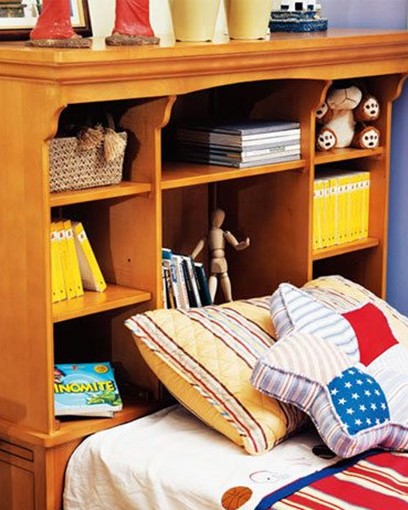 床頭柜運用式的儲物柜,可以存放些孩子日常要看的書本和玩具。大大增加來收納功能。