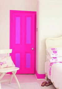 Pattern 3舊貌新顏 一反過去彩色墻壁搭配白色木制家具的風格,我們可以把門和木制品用絢麗奪目的色彩裝扮,再配上純白色的墻壁,新意別出。選用亮粉色涂刷門、門框和踢腳板,用淡紫色涂抹內(nèi)門嵌板來搭配,這是使用鮮亮色彩涂刷房間的一種巧妙創(chuàng)意,不必刷一整面特色墻壁,卻能達到同樣亮眼的視覺效果。