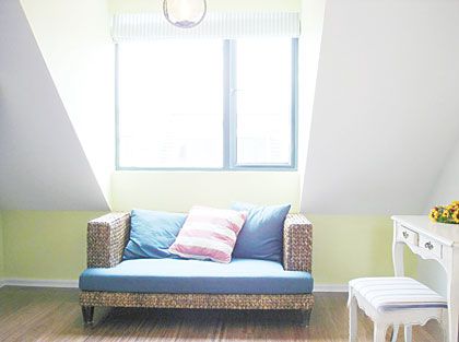 閣樓的臥室屋頂是上尖下寬的錐形,坡形屋頂給人以壓抑感。