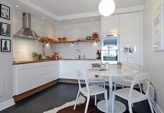 廚房處用咖啡色隔開大量的白**塊,讓顏色多了另外一個層次的同時,更加貼近自然。圓形的四人飯桌,就像在當(dāng)?shù)睾_叢蛷d的裝修一樣,享受美食的同時,好像還能感受到海風(fēng)的陣陣來襲。
