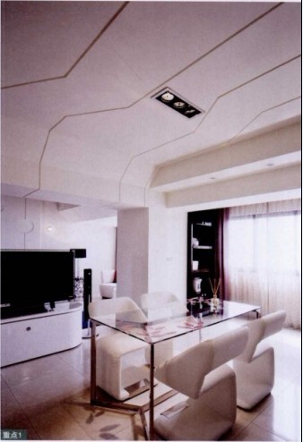 一般電視柜依著客廳主墻,但這樣的規(guī)劃會讓空間過度切割。設計師將電視柜移至客廳與餐廳之間,無形中放大了空間,而旋轉電視柜的設計,也增加了使用的功能。