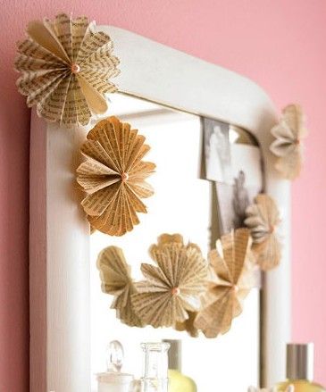 純白無色感的家具通常會和空間產(chǎn)生分歧,且相對單調(diào),把沒用的舊書本內(nèi)頁扎成一朵朵小花,隨意散落于鏡面上,讓原本單薄的家具有了體量,而周圍的其他家飾也讓空間顯得更加動(dòng)感一些。