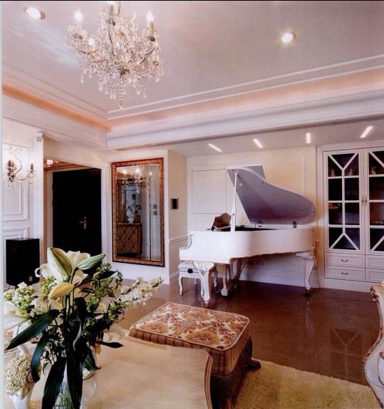 家中除了鋼琴外,還有其他樂器,如小提琴需要收納。設(shè)計師特別在鋼琴旁邊規(guī)劃了古典造型的樂器收納柜,讓收納也可以如此優(yōu)雅。