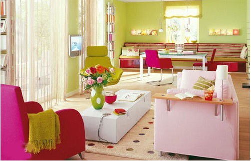 在這樣多彩的室內(nèi)空間里,可感受到一股清新味,居室環(huán)境甜美儒雅,讓你情不自禁的陷入其中,如同吃了塊麥芽糖的甜蜜。居室中不怕色彩多,只要你運用好,就能確立風格,軟裝色調(diào)的選用至關重要,巧妙合理使用便可設計出精致美家。