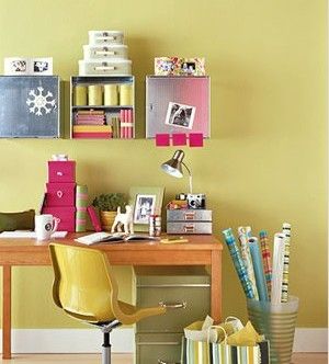 組合型的儲物方案無疑是最經(jīng)濟(jì)實(shí)用的一種,將壁柜和儲物盒等一類收納工具搭配使用,即使你的房間很小,也能將工作區(qū)打理得美觀又方便。