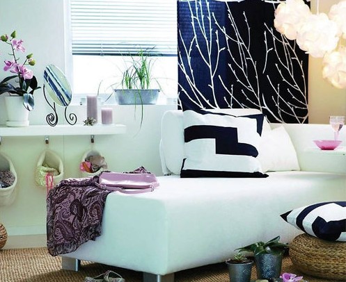 窗臺(tái)下的蘭花與明媚的陽(yáng)光融合,躺在沙發(fā)上便可取到茶杯、書籍,以及一切可提供消磨時(shí)光的事物,一款極為簡(jiǎn)單的白色隔物架為這樣一個(gè)小憩之地添上了快樂(lè)的一筆。