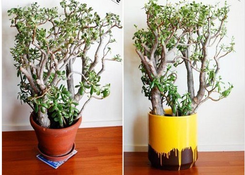 哇,一款水滴紋路的黃色花盆就做好啦,這兩個花盆做比較是不是覺得刷了黃色漆的花盆很特別很有藝術感呢?要是心動了你就行動吧!