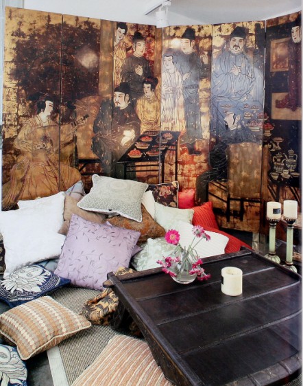 看看這間室內(nèi),色彩很豐富,但仔細(xì)觀察,這里的綠燈罩,黃綾垂簾和紫羅蘭包柱都是可以更換的,稍加改動(dòng)就可以成為另一個(gè)天地。