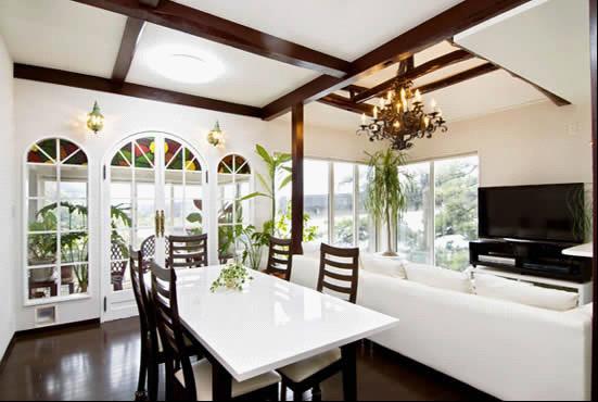一、白色為基底,運用地中海中的元素給空間增加一點品位和檔次。添加上歐式的吊燈,增添一點復古氣息,頂部與地面的顏色相呼應,空間的張力立刻顯現出來。在大面積冷色調的空間里用古色古香的木色和燈光給空間增添了點溫馨的韻味。幾盆綠色植物的裝飾給整個堅硬的空間帶來了柔和感。在空過落地窗的點綴,整個空間明亮,與外界環(huán)境溶為一體,清新自然。