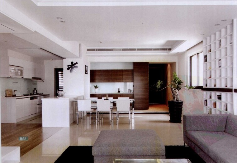 對于空間很有想法,不只希望空間能有實用的生活功能,還能營造出自己的個性。業(yè)主是從事科技工作的,回到家里想要一個溫馨而又特別安靜的空間。因此對于空間的整齊性要求很高,不希望家具柜子什么的都是塞得滿滿的,空間不留空隙,希望能留胡空白。業(yè)主工作以外,喜歡聽音樂,喜歡收集老唱片。業(yè)主原來的家里CD、DVD片就有好幾箱,搬新房家后,業(yè)主希望給它們找一個專屬空間來存放它們。于是設(shè)計師在餐廳與客廳間的過渡空間規(guī)劃了格子展示柜,并為其音響設(shè)備設(shè)計收納柜,特意不將柜體做滿,營造一個留白的美感。