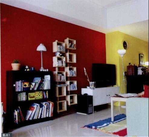 由于家人在客廳活動(dòng),所以特別在角落里規(guī)劃小孩專屬的游戲及閱讀空間,為了配合小孩的身高,書柜或置放玩具的柜子都設(shè)計(jì)得較矮,讓他們從小養(yǎng)成自己的習(xí)慣。