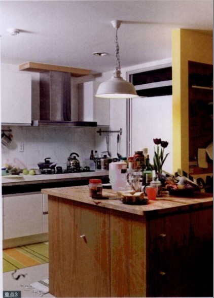 家有幼兒的居家空間,最怕孩子跑來跑去撞到沙發(fā)、踢到柜子而受傷,如果因此而限制孩子的行動(dòng),家反而成為他們不喜歡的地方。所以設(shè)計(jì)師在規(guī)劃空間時(shí),從玄關(guān)、客廳、廚房到餐廳都采用開放式,僅運(yùn)用顏色來區(qū)隔空間,從玄關(guān)的黃到客廳的線到廚房的白,每個(gè)空間都有自己的個(gè)性??紤]到預(yù)算,舍棄木作,以現(xiàn)成家具為主,以活動(dòng)式的收納方便孩子在空間活動(dòng)。