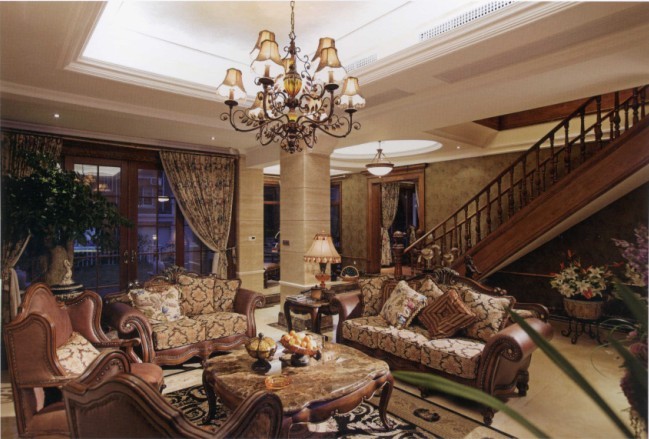 本案是帶有南、北兩個(gè)室外花園的獨(dú)棟別墅,是專為成功且品位高雅的人士量向定制的。此案的空間定為美式風(fēng)格。便捷、隨意、休閑是美式家居的特色,因此,在整個(gè)環(huán)境的設(shè)計(jì)中,應(yīng)該避免刻意的裝飾,并強(qiáng)調(diào)合理的交通流線,以保證不同功能布置的實(shí)用與方便。為了豐富空間的層次和展現(xiàn)空間的文化積淀,設(shè)計(jì)師在材質(zhì)上選用的都是仿舊、仿古系列。