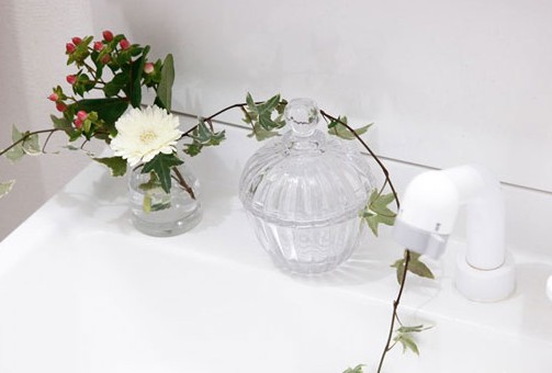 透明的玻璃器具給人純凈的感覺,既可以用來收納些小玩意,又可以作為小花瓶。插上一兩株綠色植物,讓綠色帶來的清爽布滿每個角落。