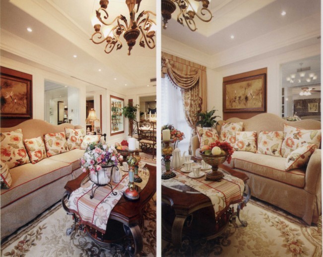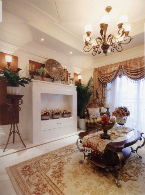 概要: 美式風(fēng)格,通常運(yùn)用在別墅或是大戶型的住宅空間中。本案中,設(shè)計(jì)師要將美式的浪漫進(jìn)行到底。起居空間采用簡(jiǎn)化了的美式線條造型墻,與頂棚的造型線框渾然一體,覆以純凈的白色,使居室顯得更加明亮。金棕色的裝點(diǎn),使空間格調(diào)端莊、雅致。再搭配美式經(jīng)典家具及精致的擺件,共同打造了頗具獨(dú)特內(nèi)涵與品位的居室空間。