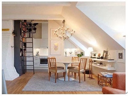空間不大的小家里融合了極簡(jiǎn)風(fēng)格的設(shè)計(jì),將廚房、餐廳和閱讀角打造于一體。通天的書架劃分出物質(zhì)和精神食量?jī)纱髤^(qū),家具深淺色調(diào)的變化為白色空間帶來(lái)一絲新意!整體看起來(lái)很溫馨!