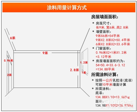 小編寄語:墻面刷漆面積的計算除了根據建筑面積來計算的方式,還有一種簡易的計算方法,施工面積=套內面積×2.5(或×3),門窗較多可×2.5,反正×3。但這種方法計算結果有一定的出入。