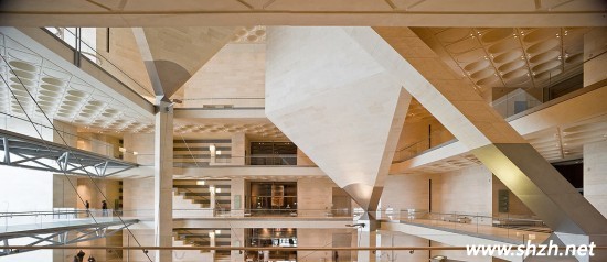 博物館內(nèi)的設(shè)計(jì)也是比較繁雜的,進(jìn)入館內(nèi)抬頭向上看,各種不規(guī)則的室內(nèi)裝修設(shè)計(jì)風(fēng)格,給館內(nèi)增加了幾分韻味。此次的設(shè)計(jì)讓貝聿銘在這個(gè)國(guó)家考察了幾個(gè)月們最后依據(jù)埃及,突尼斯等地風(fēng)格特色綜合起來設(shè)計(jì)的。室內(nèi)的金色的墻壁是采用當(dāng)?shù)氐牟A粔磉M(jìn)行裝飾的,體呈現(xiàn)出了整個(gè)館內(nèi)的大氣。