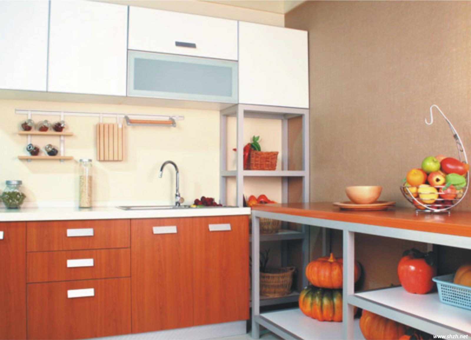 優(yōu)點(diǎn):用于櫥柜臺(tái)面的瓷磚與墻磚有著相同的物理特性,非常耐用,形成一種田園風(fēng)格,給人一種耳目一新之感。
