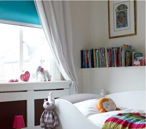 房相對(duì)上面的基調(diào)來說,這又上來一個(gè)年齡段。從照片上看來間空間雖然小,但采光很好。心形的擋板是小公主最愛,床上靠的布偶娃娃和小熊是她們最好的玩伴。