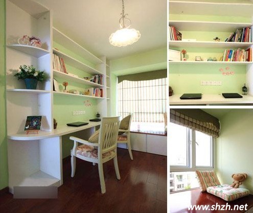 我們都知道書房是一個可以讓人靜下心來學習和工作的空間,因此,書房的裝修設(shè)計及色調(diào)的搭配都可以影響到人們的心境。上海裝潢網(wǎng)的設(shè)計師提醒我們家居裝修中書房裝修有很多的講究。例如其中一點:書房要能夠讓人們靜下心來進行閱讀、學習、工作。在這里小編就推薦給大家一款清新雅致的書房,此種書房的裝修設(shè)計營造出一種輕松的氛圍,讓人們在學習的過程中沒有壓迫感。同時也可以提高大家的工作效率哦!