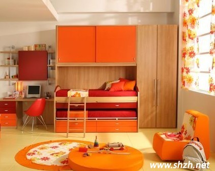 一、兒童房在家居的設計中,以暖色為主,給孩子安心的感覺,紅色和黃色的相搭,制造絢爛光線,燈光的照射將空氣也染成了可愛的橙色,而在兒童房的布置上,加上可愛的圖案會讓臥室更覺童趣十足,在柔和的燈光下,舒適的臥室會為童年留下深刻的美好印象。