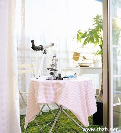 不要以為陽臺(tái)就是只曬衣服的地方,對(duì)于小戶型的家庭,空間有限,那么你就完全可以把它變成一個(gè)完美的小餐廳。一張簡(jiǎn)約的小餐椅是個(gè)不錯(cuò)的選擇,再搭配多彩的地毯,使整個(gè)空間變得活躍起來,再種點(diǎn)綠色植物,點(diǎn)綴這個(gè)小小餐廳,那么,陽臺(tái)就會(huì)變得活力而有 生機(jī)了。