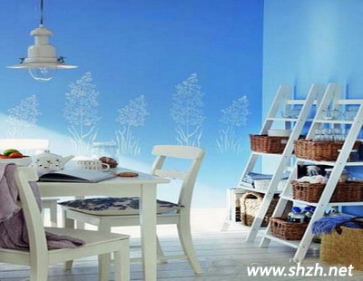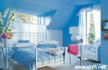 地面:純白色木地板與藍(lán)色墻面非常和諧的搭配在一起,在地板選購上一定要實(shí)木地板才能達(dá)到預(yù)期的效果。